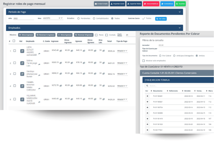 Sistema contable, inventario, facturación electrónica y nómina.